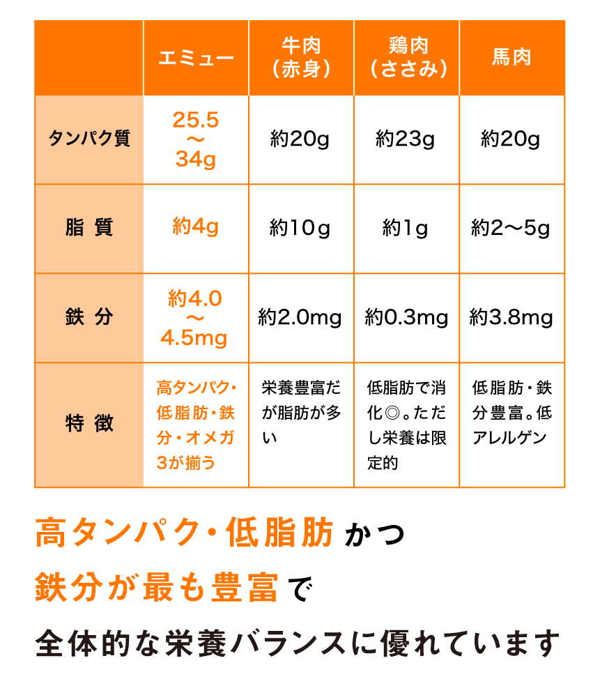 エミュー肉は、栄養設計の観点から見ても非常に優秀です。